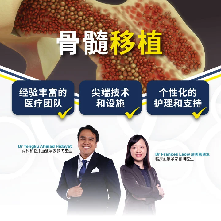 在寶康医院,我们的骨髓移植团队由经验丰富的医疗团队组成,并由 Tengku Ahmad Hidayat 博士和Frances Leow May Yan博士领导。